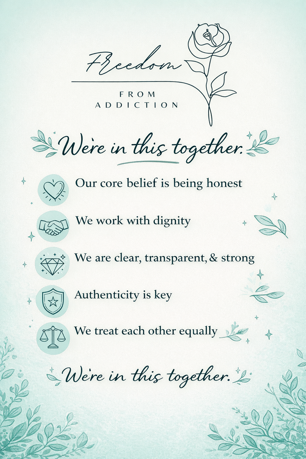 Ervaringsdeskundigheid is de kracht van ons bedrijf. We hebben dit pad zelf bewandeld. We hadden alles geprobeerd, we waren radeloos. Totdat we in aanraking kwamen met de Twaalf stappen, dit heeft voor ons het verschil gemaakt. Waar elke andere reguliere verslavingszorg faalde, slaagde de Twaalf Stappen erin om ons de bevrijding te geven waar we zo intens naar verlangden.